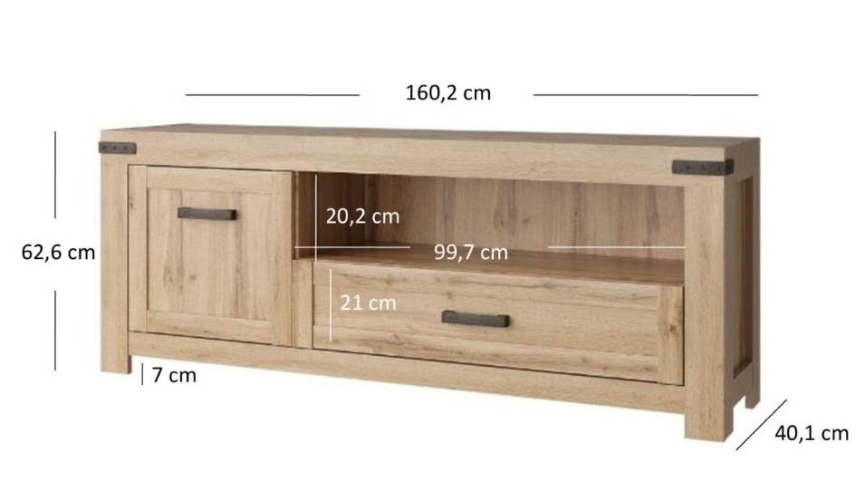 - Tv stolek (ŠxHxV): 160,2 x 40,1 x 62,6 cm