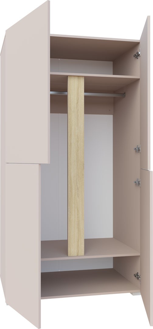 Praktická šatní skříň je ideálním doplňkem do dětského nebo studentského pokoje. Uvnitř se nachází šatní tyč a 2 police, které poskytuje dostatek prostoru pro oblečení, hračky či školní potřeby. Skříň je vyrobena z kvalitní LTD desky o tloušťce 16 mm a zaujme moderním provedením kašmír s detaily v dekoru dub Sonoma.