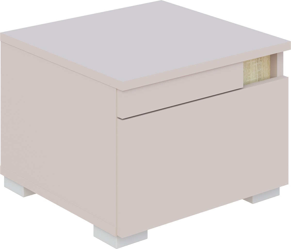 Praktický noční stolek je ideálním doplňkem do dětského nebo studentského pokoje. Obsahuje praktickou šuplík na hračky či školní potřeby. Stolek je vyroben z kvalitní LTD desky o tloušťce 16 mm a zaujme moderním provedením kašmír s detaily v dekoru dub Sonoma.