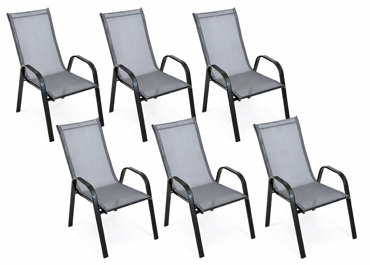Zahradní kovové křeslo 6 ks DARMA černá/tm. šedá látka