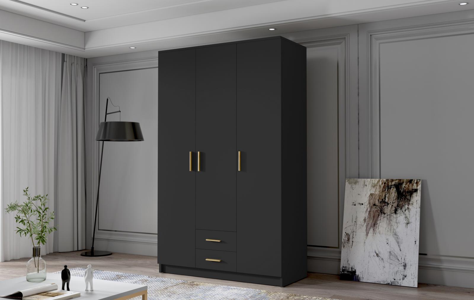 Skříň Arya I 120 - černá/zlaté úchytky