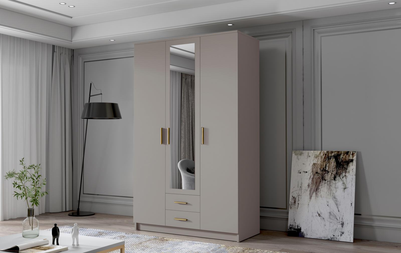 Skříň Arya II 120 - kašmír/zlaté úchytky