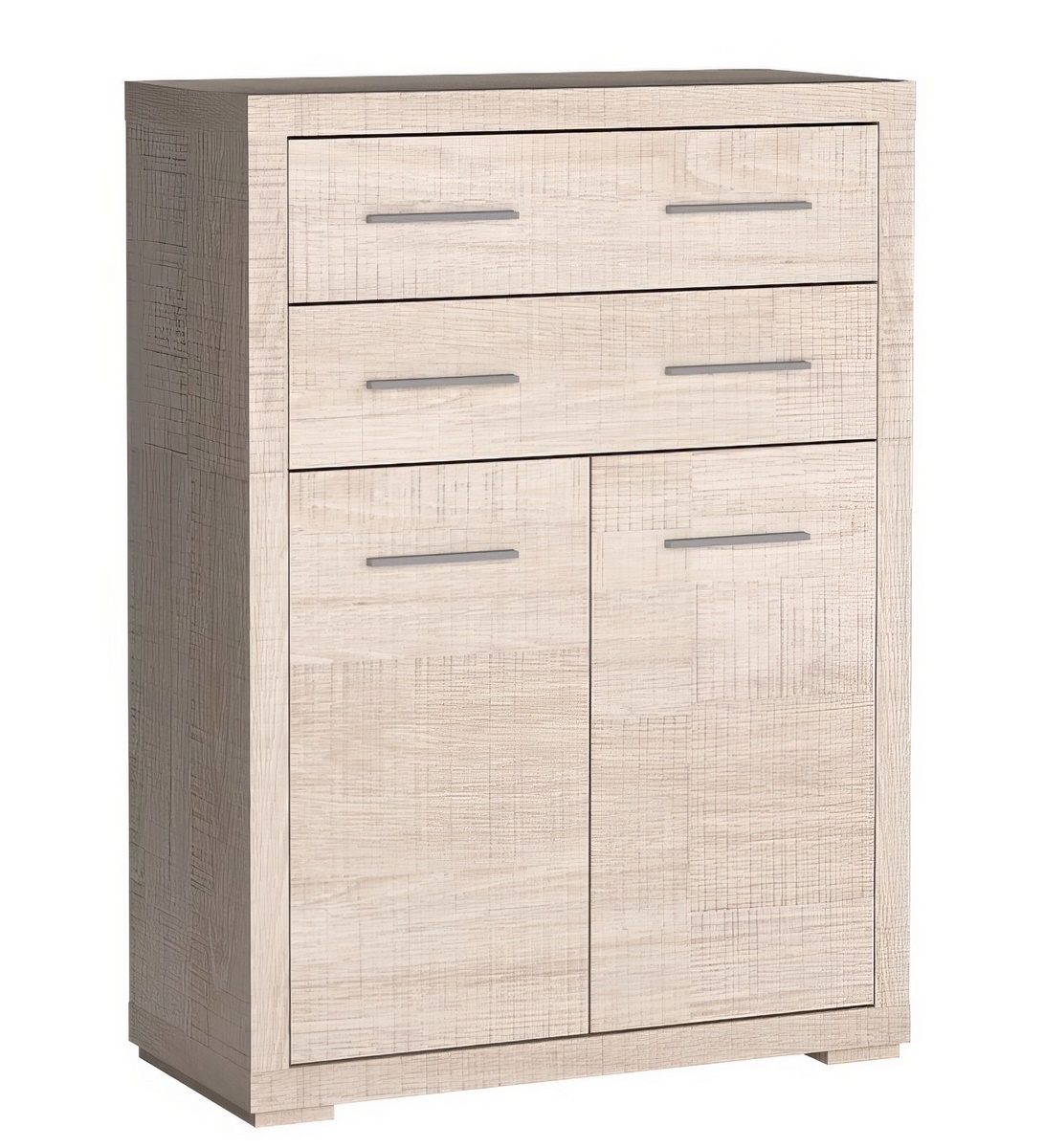 Komoda VEGAS nabízí praktické uspořádání se dvěma spodními dvířky s policí a dvěma horními zásuvkami. Vyznačuje se moderním designem a robustním vzhledem.