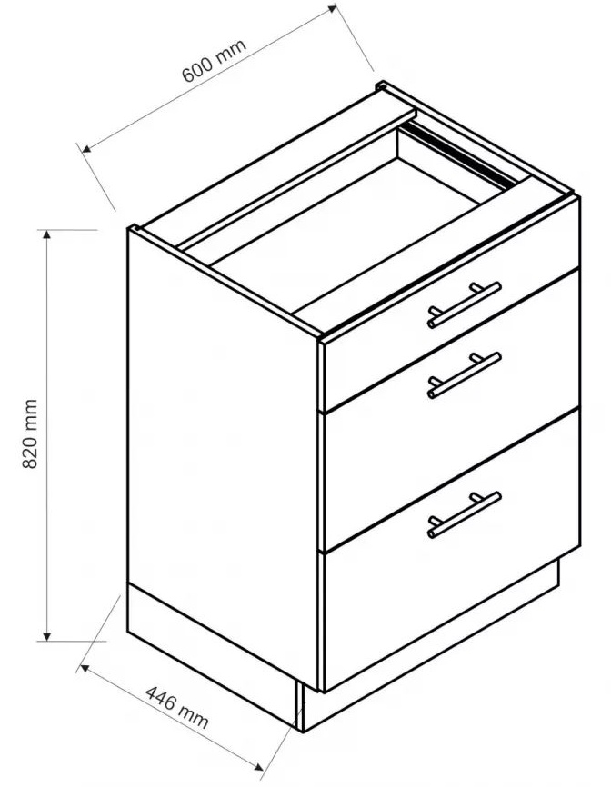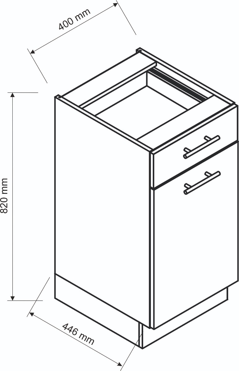Sestava se skládá ze spodních skříněk - výška 82 cm, hloubka 45 cm, šířka: