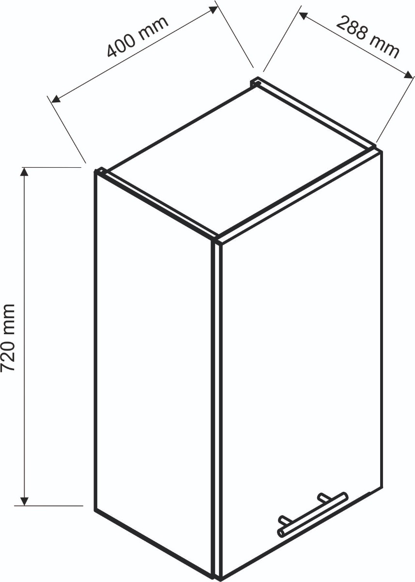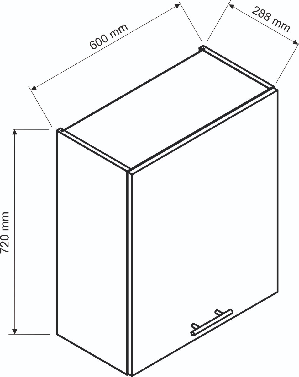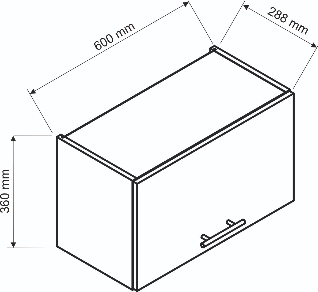 - 60 cm skříňka nad digestoř s výklopem otvíraným nahoru.