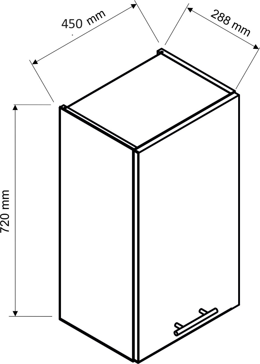 a vrchních skříněk - výška 72 cm, nad digestoří 36 cm, hloubka 29 cm, šířka: