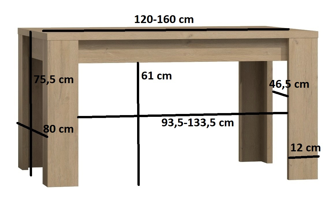 Jídelní stůl rozkládací 120 INDIANAPOLIS dub lefkas