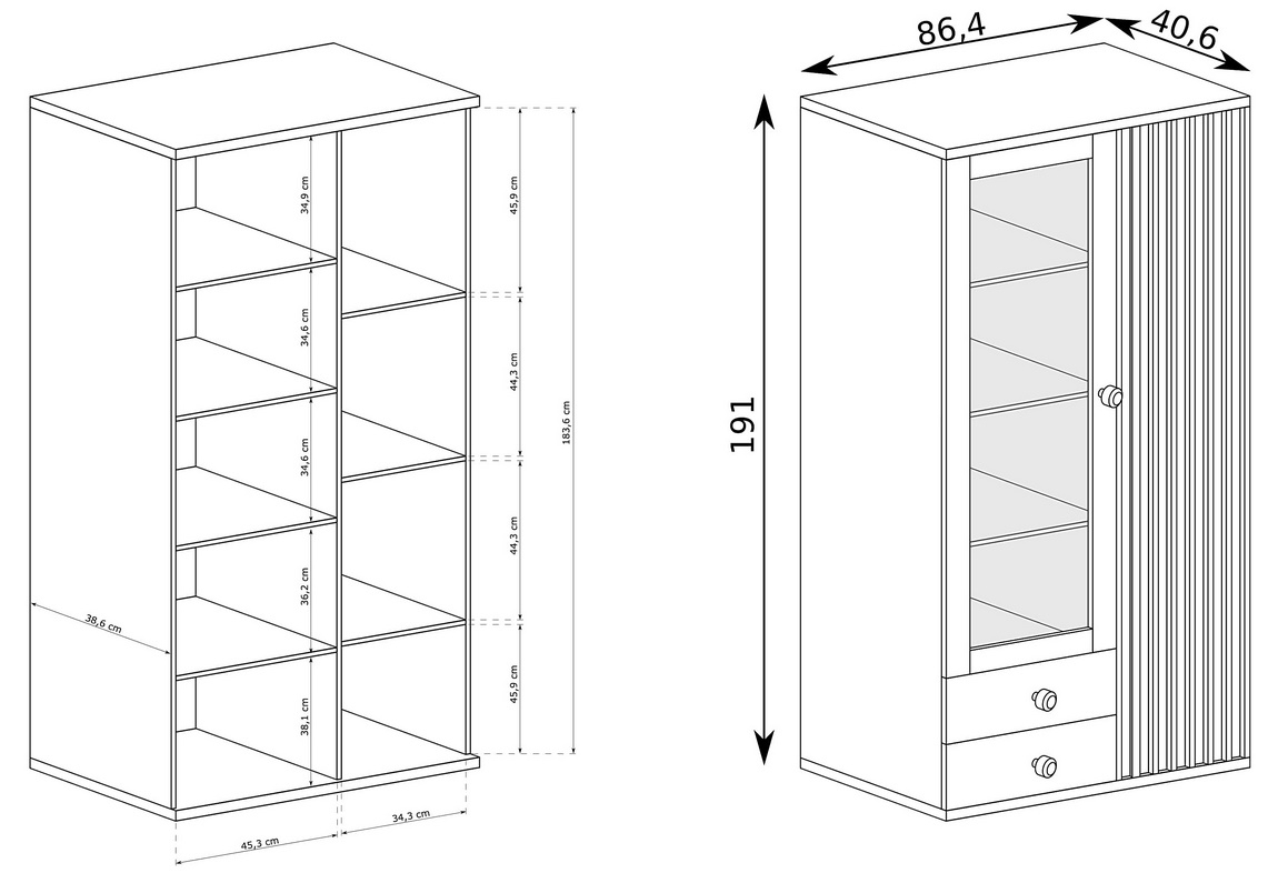 Materiál: LTD (lamino), MDF, sklo