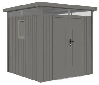 Zahradní domek využijete pro uskladnění např. zahradního nářadí, sekačky, příslušenství k bazénu atd. Součástí domku je i přístřešek, který lze využít například pro uskladnění jízdních kol či jako dřevník. Moderní designu domku se hodí do každé zahrady. Domek má dvojité posuvné dveře, tudíž do něj budete mít pohodlný přístup. Vyroben z kvalitních ocelových plechů tloušťky 0,25-0,30 mm a kvalitního rámu zpozinkované oceli tloušťky 0,5-0,8 mm. Maximální zatížení střechy sněhem je 60 kg/m2. Ocelová, pozinkovaná konstrukce s ventilačními mřížkami. Bez podlahy.