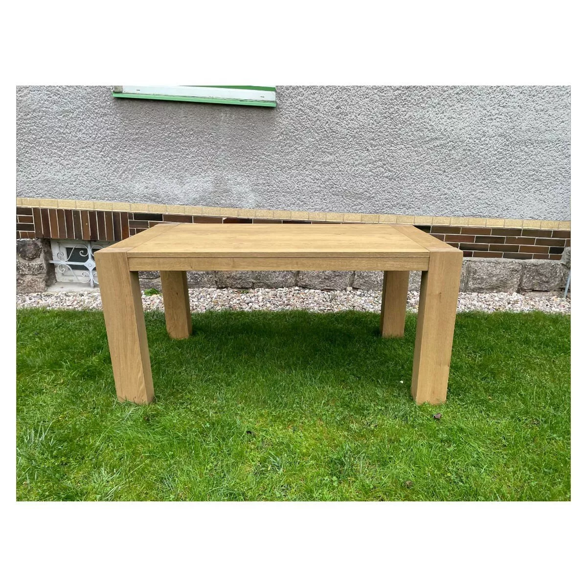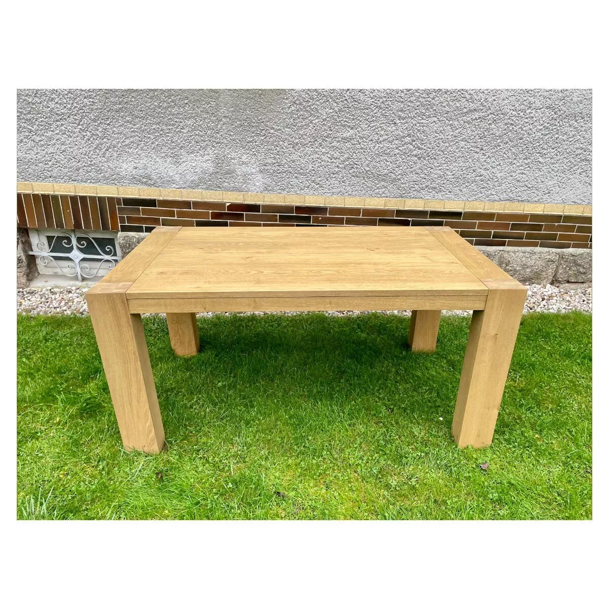 Elegantní masivní jídelní stůl bez rozkladu v oblíbeném přírodním pískovém odstínu je ideální volbou pro moderní jídelnu i kuchyni. Spojení kvalitního dubového dřeva a přirozeného vzhledu zajišťuje nadčasový design, který interiéru dodá útulnou a harmonickou atmosféru.