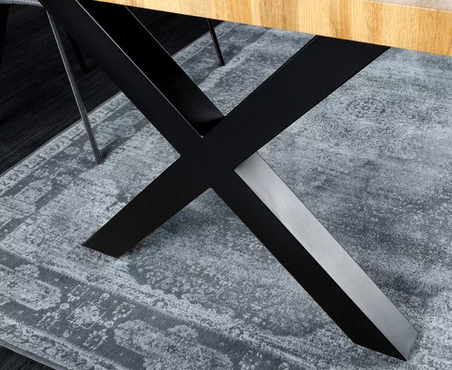 Jídelní stůl WILD je krásný a moderní kus nábytku, který okamžitě upoutá pozornost v jakékoli místnosti. Díky nádherně vzorovanému dubovému dekoru a kovovému rámu, se perfektně hodí do do všech typů interiérů. Tento stůl vyniká svým jednoduchým designem, jehož dominantním prvkem je deska s dubovým vzhledem a konstrukce z kovu do tvaru X, která zajišťuje nejen stabilitu, ale také dodává celému kusu osobitý charakter. Správně zvolený jídelní stůl dokáže zvednout atmosféru celé místnosti a stát se srdcem domova, kde se každý cítí vítán.