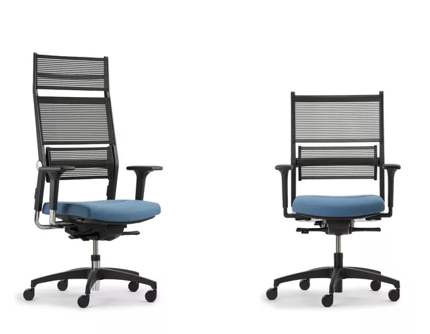 Elegantní proužkaté opěradlo je nejen esteticky přitažlivé, ale i funkční. Plně flexibilní síťovina umožňuje nastavit otočné židle až o 10 cm na výšku, což se snadno přizpůsobí každému uživateli a podpoří pohyb těla bez ohledu na polohu sezení. Nově vyvinuté, flexibilně namontované opěradlo nabízí optimální ergonomickou podporu během celého pohybu.