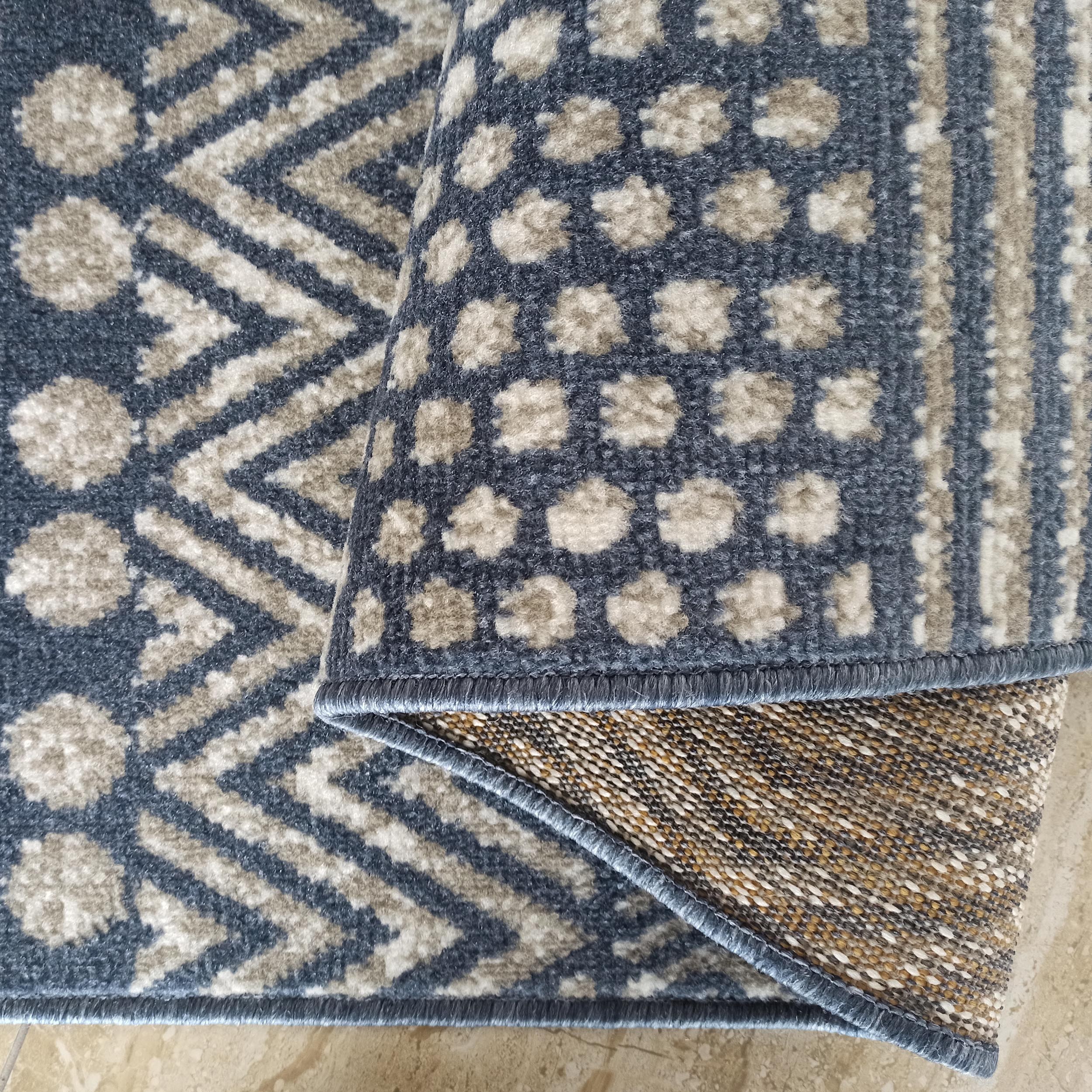 Moderní koberec Lara 07 s jedinečným geometrickým vzorem se bude skvěle vyjímat v každé místnosti, a to jak v moderním, minimalistickém, eklektickém tak i klasickém stylu. Geometrické vzory na koberci přinášejí do interiéru moderní a dynamický prvek. Díky opakujícím se prvkům, symetrickým tvarům a šedomodré kombinaci barev působí geometrický koberec jako stylový doplněk, který oživí jakýkoli prostor. Tyto vzory jsou výrazné a kontrastní a zároveň jemné a decentní, přičemž dodávají místnosti nejen vizuální zajímavost, ale i pocit harmonie. Koberec se vyznačuje také vysokou kvalitou a na dotek příjemným měkkým fleecem. Má nejen dekorativní účel, ale také skvěle izoluje teplo od podlahy. Ocení jej především ti, kteří upřednostňují originální a kvalitní koberce. Krásná sytá barva a vlas příjemný na dotek jsou jen některé z předností tohoto koberce.