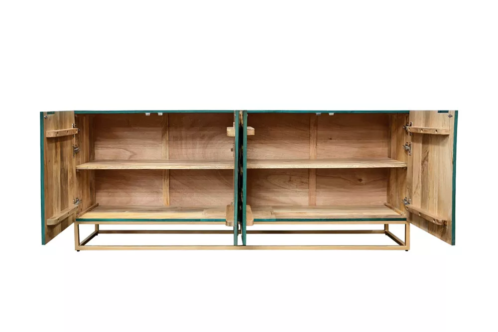 Komoda GOLDEN LAGOON 180 CM tyrkysová/zlatá masiv mango