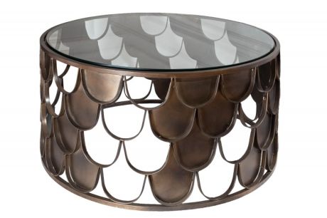 Konferenční stolek ABSTRACT v měděné barvě představuje elegantní a stylový prvek, který zaujme na první pohled. Stolek působí jako umělecký kousek inspirovaný vodním světem. Jeho struktura je tvořená jemnými šupinami, stolek díky tomu vypadá velmi nadčasově. Díky průhledům v designu působí vzdušně ale i prostorově výrazně, což z něj činí ideální doplněk do moderních, boho i klasických interiérů. Tento konferenční stolek přinese do Vašeho domova svým netypickým designem sofistikovaný dotek elegance a luxusu a stane se stylovým středobodem každého obývacího pokoje.