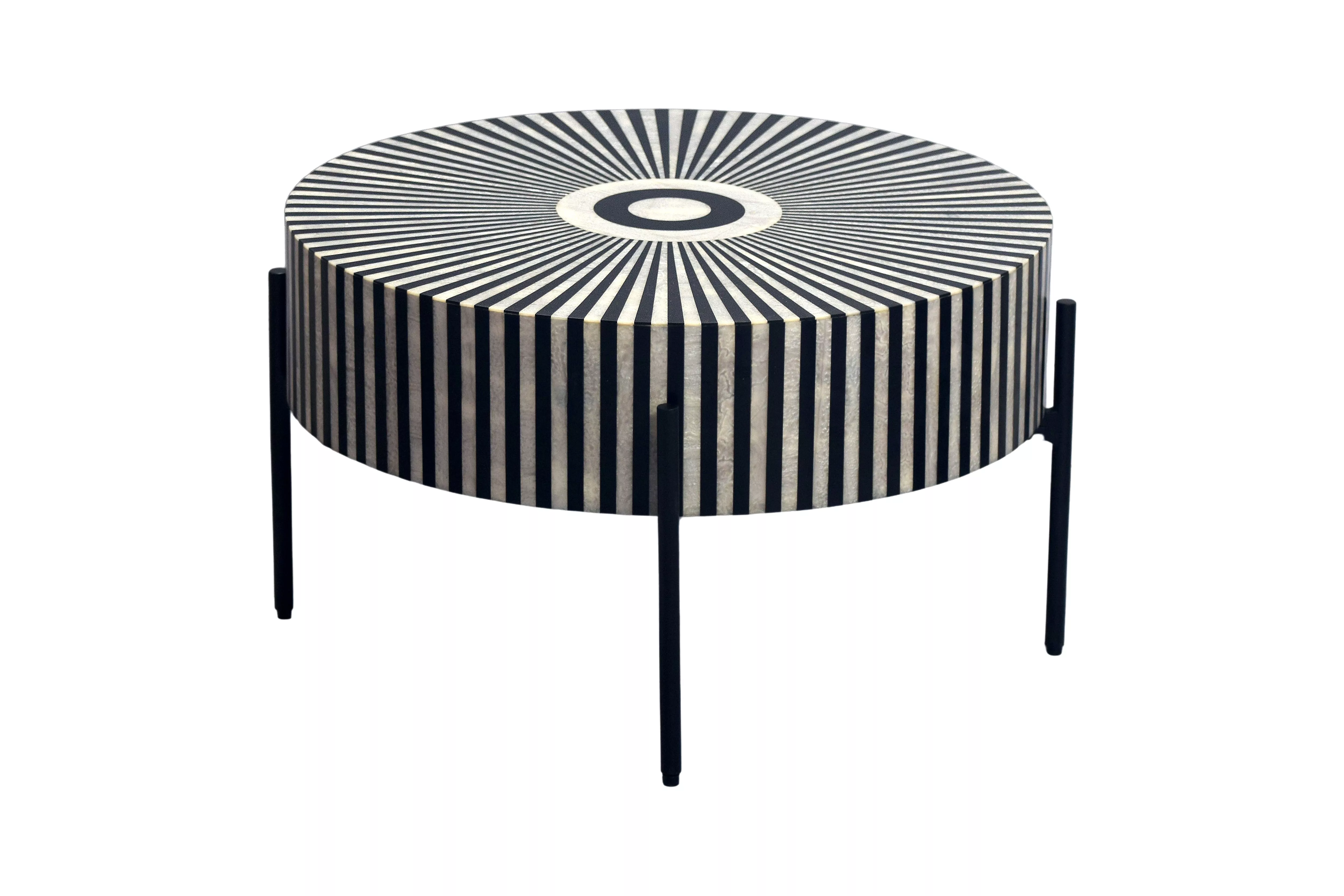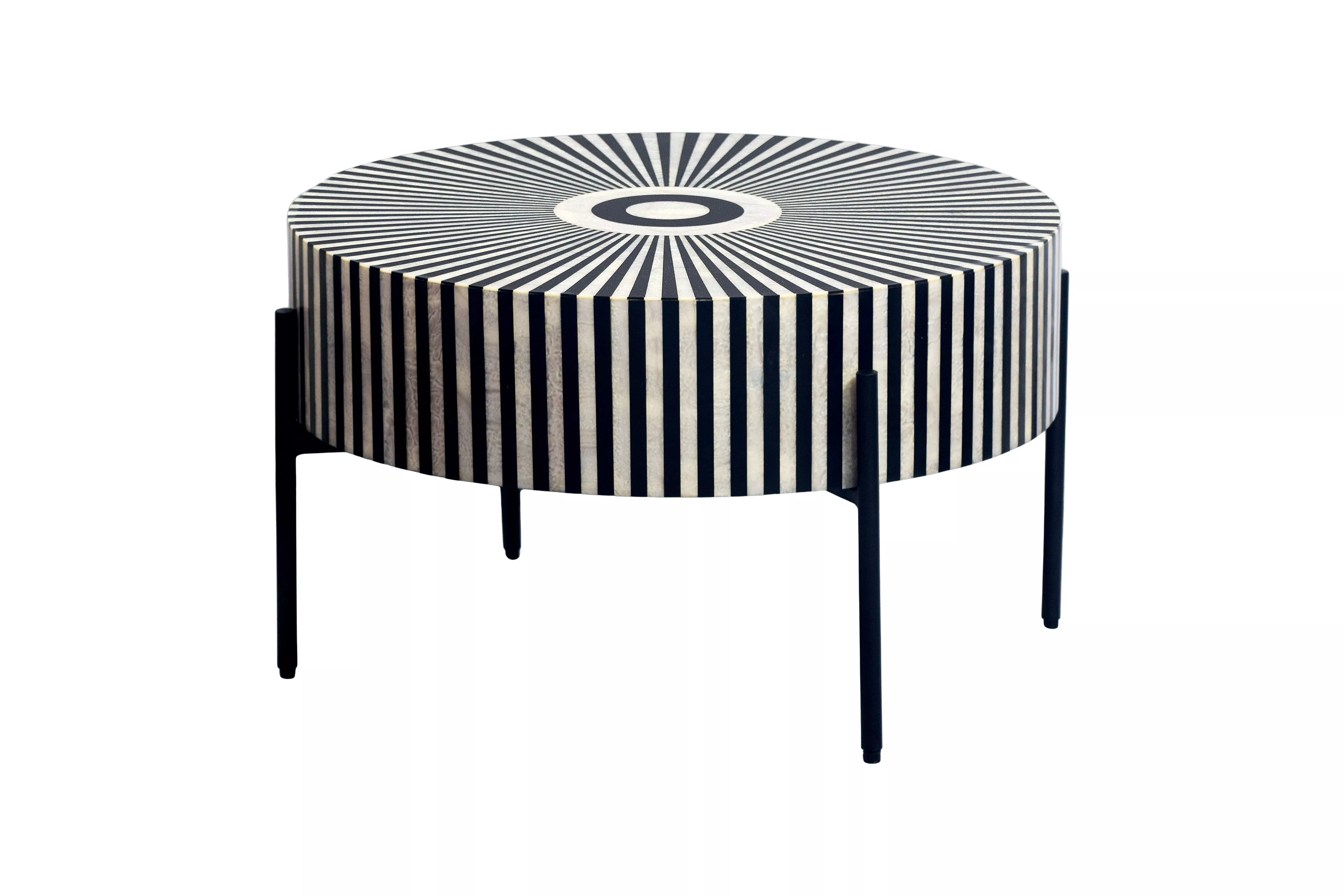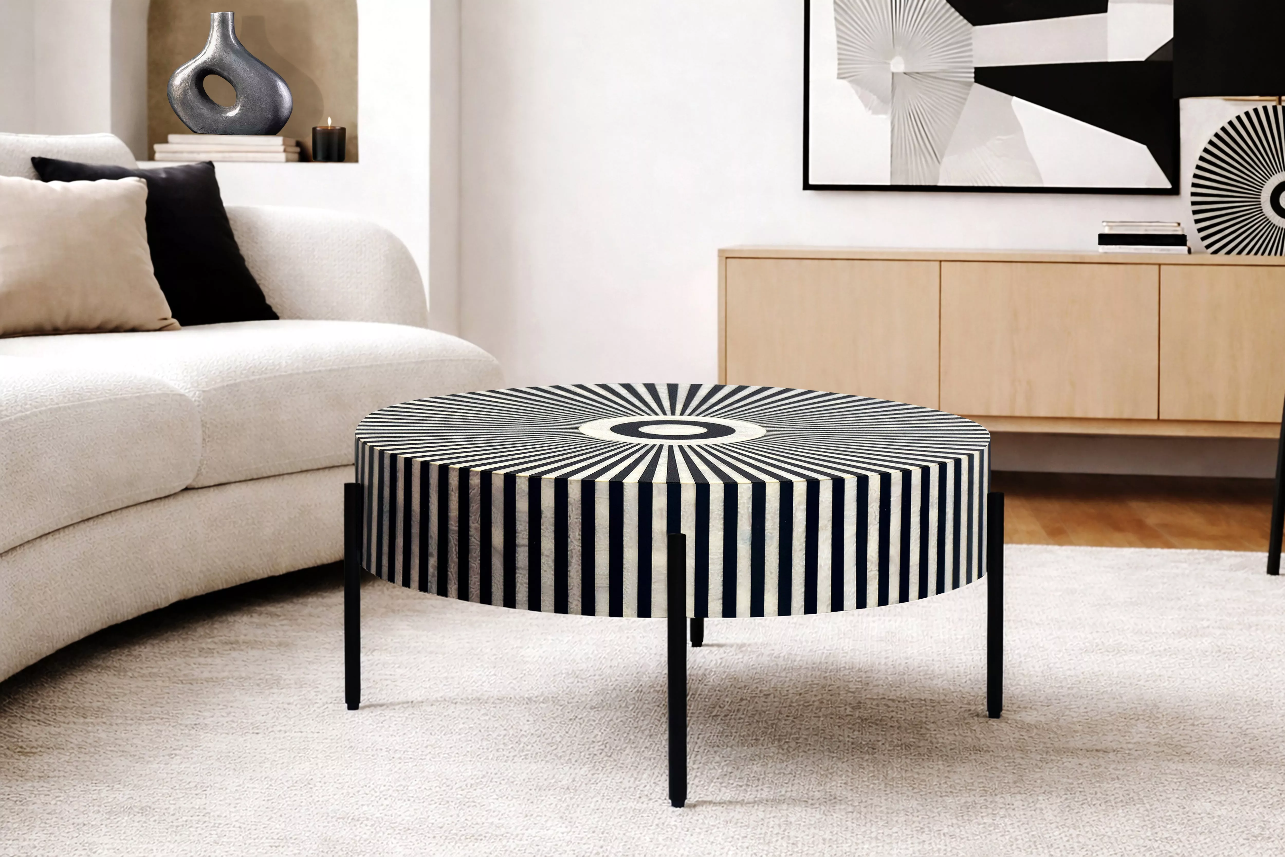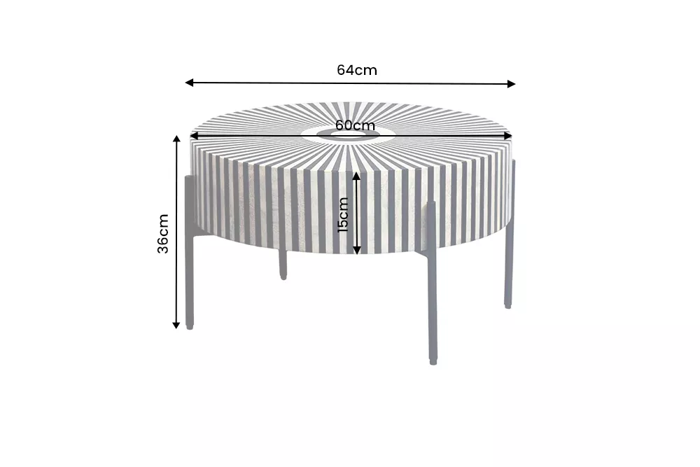 Designový konferenční stolek s bone inlay intarzií v černo-bílé kombinaci představuje dokonalé spojení řemeslné tradice a moderní estetiky. Každý kus je ručně vyráběný s důrazem na detail, díky čemuž vzniká originální vzor s jedinečným charakterem. Výrazná deska v kontrastních tónech dodá interiéru osobitost a promění stolek v nepřehlédnutelný středobod obývacího prostoru.
