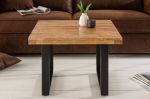 Stolek má rozměry 60 cm na šířku, 45 cm na výšku a 60 cm na hloubku, což ho činí ideální pro umístění do větších i menších prostor. Přírodní deska spolu s černou kovovou konstrukcí vytváří elegantní symbiózu, která je současně moderní a nadčasová. Deska je vyrobena z kvalitního lakovaného mangového dřeva, které je známé svou odolností a dlouhou životností. Rám stolku je z kovu, tento materiál zajišťuje odolonost a pevnost celé konstrukce.