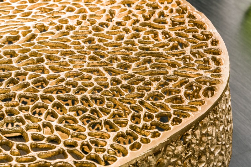 Konferenční stolek LEAF ve zlaté barvě představuje elegantní a stylový prvek, který zaujme na první pohled. Stolek působí jako umělecký kousek inspirovaný přírodou. Jeho struktura, tvořená jemnými lístky nebo korály (podle každého fantazie) a rostlinnými motivy, vytváří jedinečný vizuální efekt, který kombinuje lehkost a eleganci. Díky průhledům v designu stolek působí vzdušně a prostorově nenápadně, což z něj činí ideální doplněk do moderních, boho i klasických interiérů. Tento konferenční stolek přinese do Vašeho domova svým netypickým tvarem sofistikovaný dotek přírody a stane se stylovým středobodem každého obývacího pokoje.