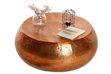 Konferenční stolek ORIENT II v měděné barvě představuje elegantní a stylový prvek, který zaujme na první pohled. Stolek je jedinečný nejen svou výraznou barvou, ale především bohatým tepaným povrchem, který vytváří plastický a vizuálně přitažlivý efekt. Tento dekorační prvek dodává stolku exotický vzhled a přináší do interiéru prvky orientálního stylu.