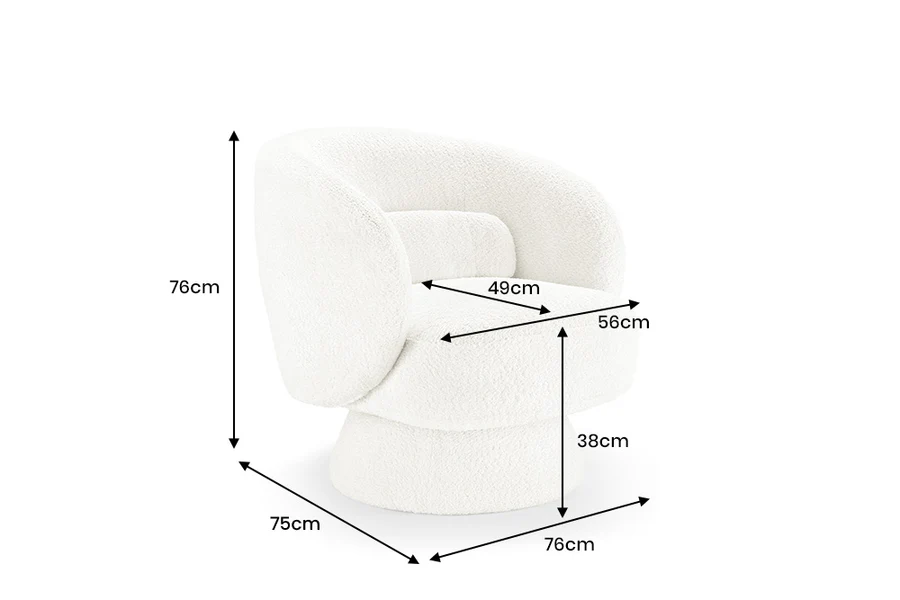 Otočný sedák zajišťuje flexibilitu a pohodlí při sezení, což je ideální pro chvíle odpočinku nebo jako funkční prvek v pracovním prostoru. Jeho rozměry 76 cm na šířku, 76 cm na výšku a 75 cm na hloubku zajišťují dostatek prostoru pro pohodlné nasazení, zatímco jeho jemná bílá barva dodává celkovému vzhledu eleganci.