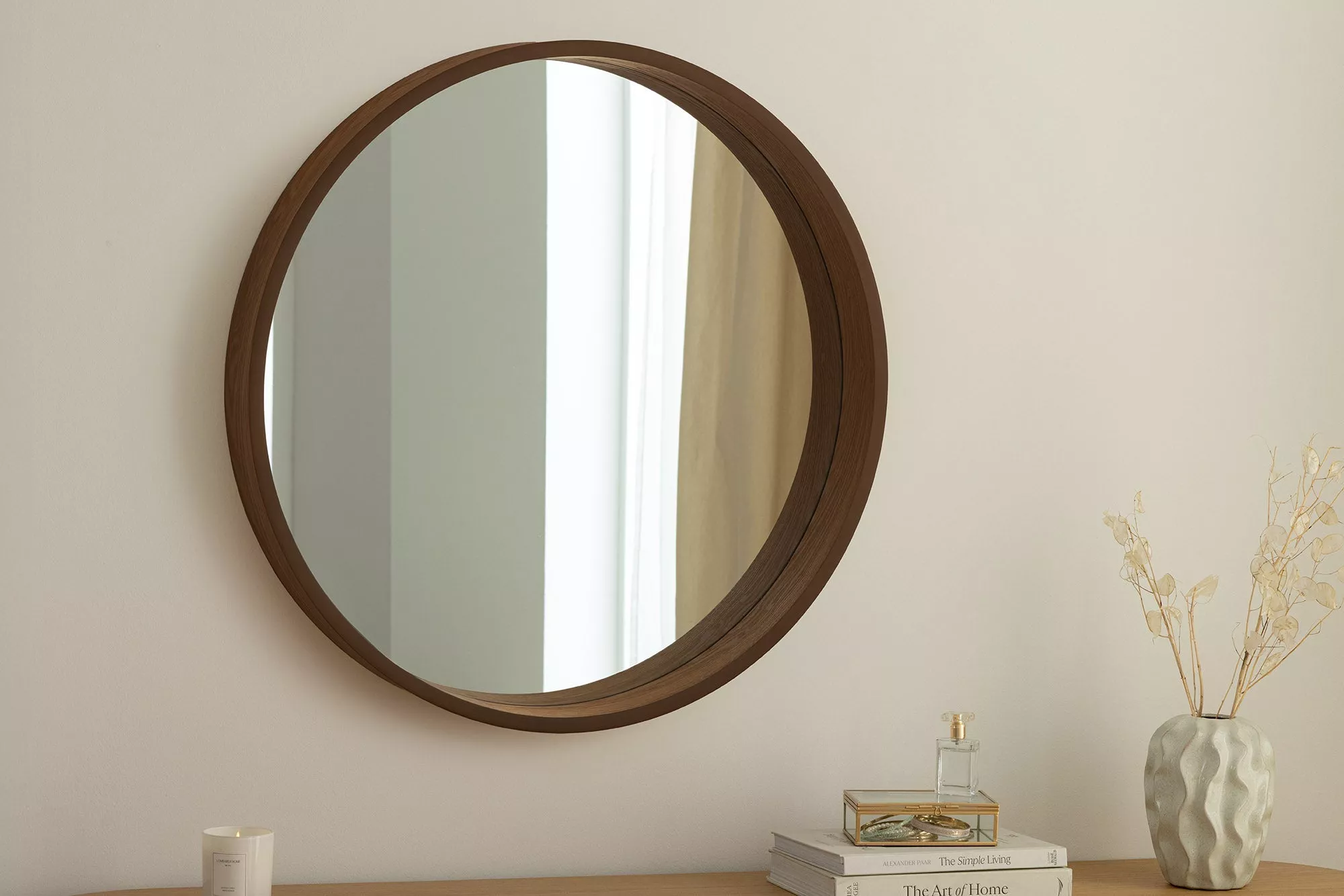 Kulaté zrcadlo PORTRAIT 70 CM ořechový vzhled