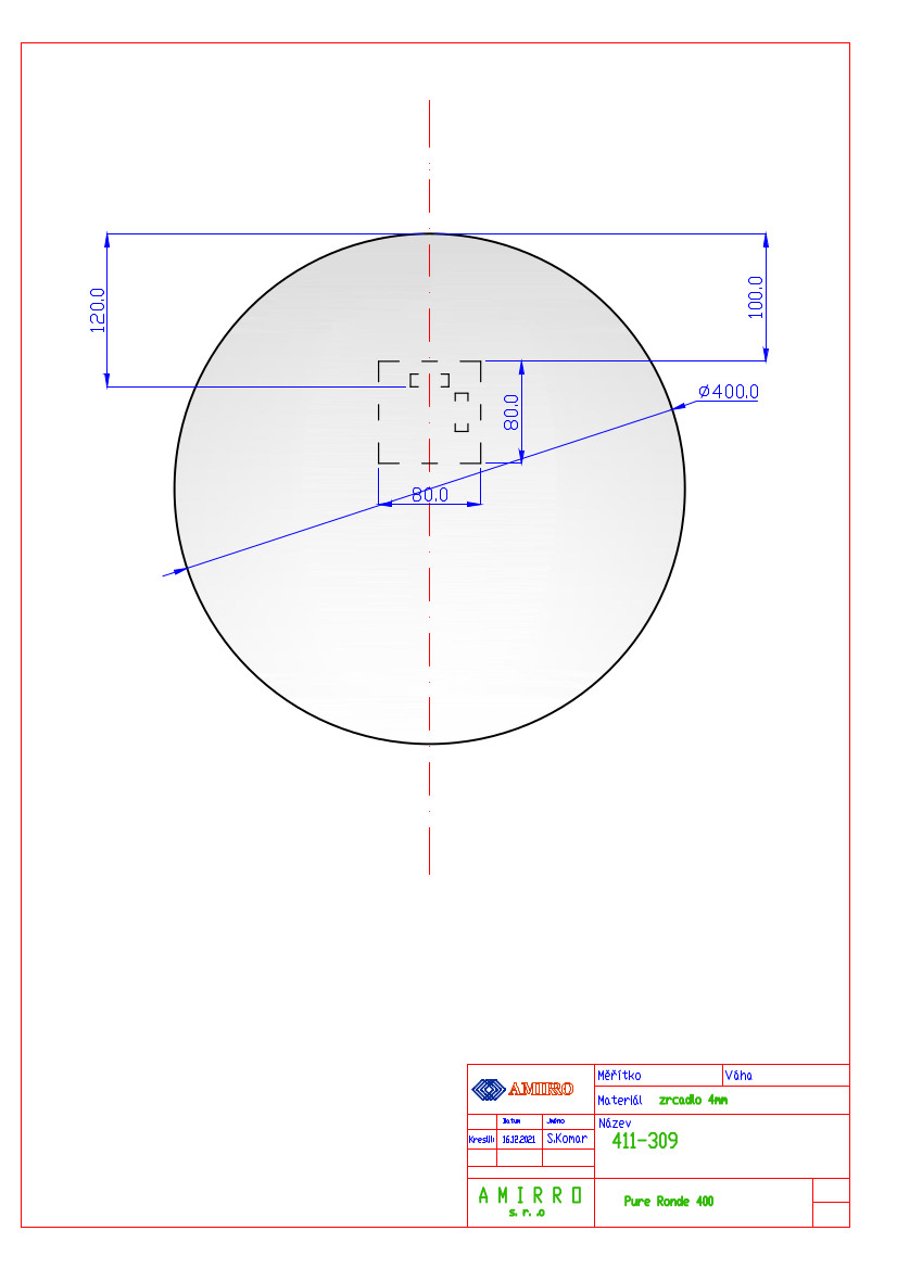 Kulaté zrcadlo PURE RONDE 40 CM o síle 4mm s leštěnou hranou - včetně závěsů