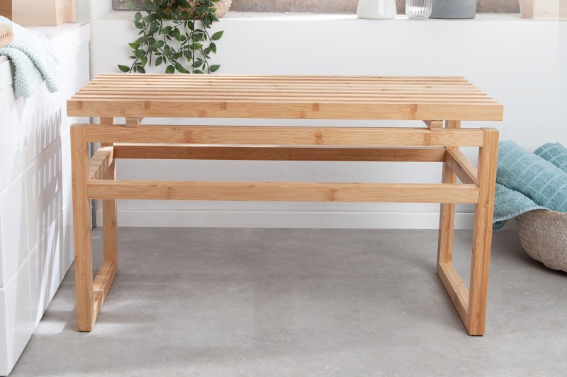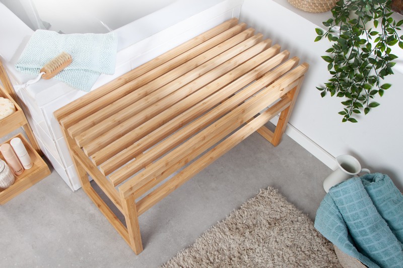 Designová lavice LAGOON SPA 75 cm z bambusového dřeva nabízí multifunkční využití jako sedací plocha nebo odkládací stolek do koupelny. Jeho kompaktní rozměry a přírodní vzhled se hodí do menších koupelen, kde šetří místo a zároveň přidává na estetice. Bambusové dřevo je odolné vůči vlhkosti, což zajišťuje dlouhou životnost a snadnou údržbu. Tato lavice je ideálním řešením pro ty, kteří hledají funkční a stylový nábytek do své koupelny.