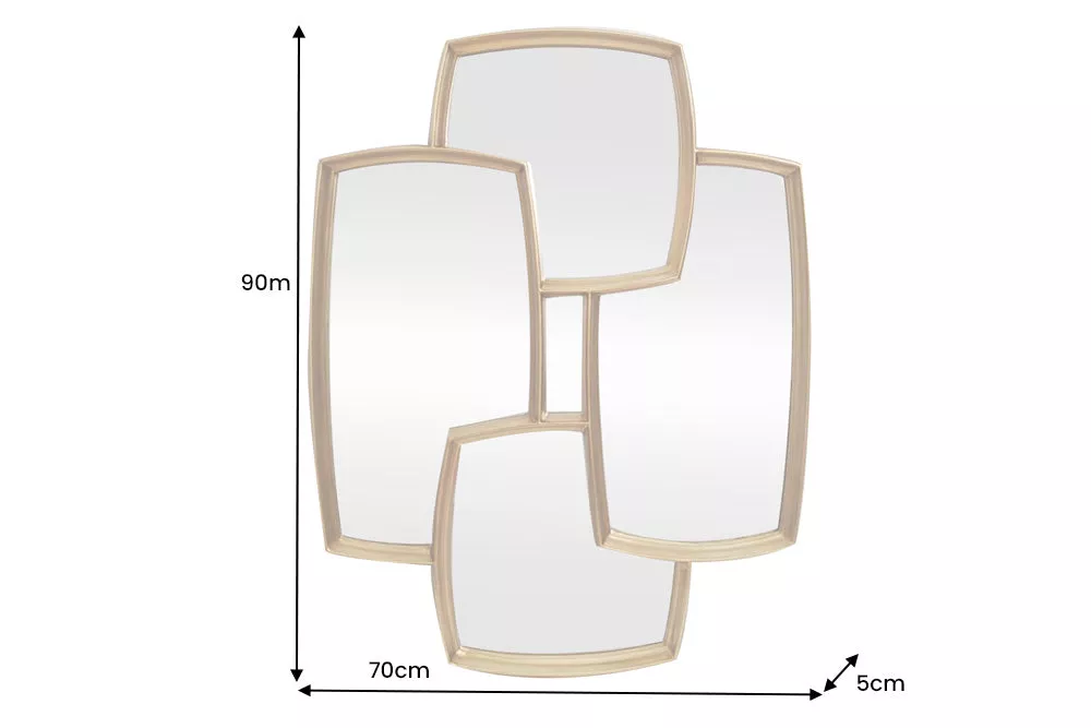 Moderní zlaté zrcadlo QUADRA 90 cm přináší do vašeho domova elegantní design a více světla v každém prostoru. Čtyři harmonicky uspořádané zrcadlové plochy vytvářejí stylový vizuální efekt a díky variabilnímu zavěšení můžete zrcadlo pověsit vertikálně i horizontálně podle vašeho vkusu. Zlatý rám v moderním stylu se hodí do obývacího pokoje, chodby i ložnice a opticky zvětší prostor. Ideální volba pro každého, kdo chce kombinovat funkčnost s jemným dekorativním akcentem.