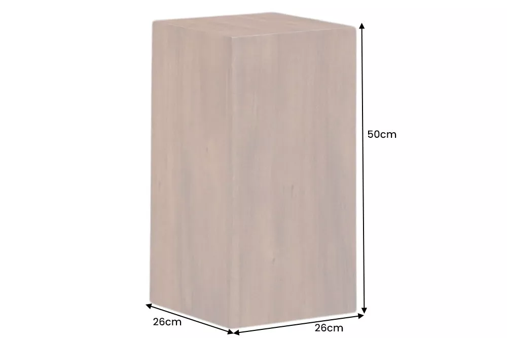 Dekorační sloup COLUMNA BROWN 50 cm v přírodní hnědé barvě z masivního akáciového dřeva je stabilní a moderní doplněk pro váš interiér. Jeho univerzální design se hodí do různých stylů a prostorů. Díky použití přírodního materiálu přináší do vašeho domova kousek přírody. Ideální pro vystavení rostlin, sošek nebo jako samostatný dekorativní prvek.