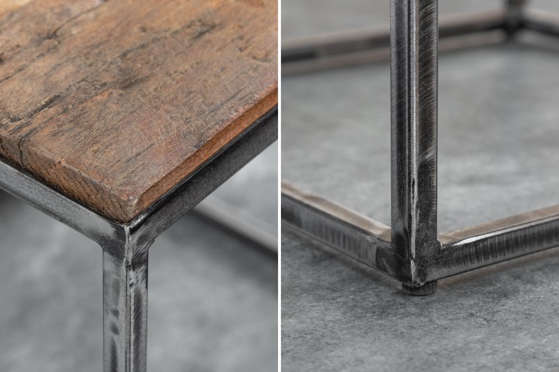 Malé prasklinky a suky jsou pro stolky z této řady typické. Produkty jsou pečlivě vyráběny z recyklovaného dřeva, které nejenže přispívá k udržitelnému hospodaření s přírodními zdroji, ale zároveň se vyznačují svou jedinečnou estetikou a vysokou kvalitou. Jeho rozměry jsou 40 cm na šířku, 40 cm na výšku a hloubka je 40 cm. Tento stolek nejlépe vynikne v industriálním, skandinávském, přírodním či minimalistickém interiéru.