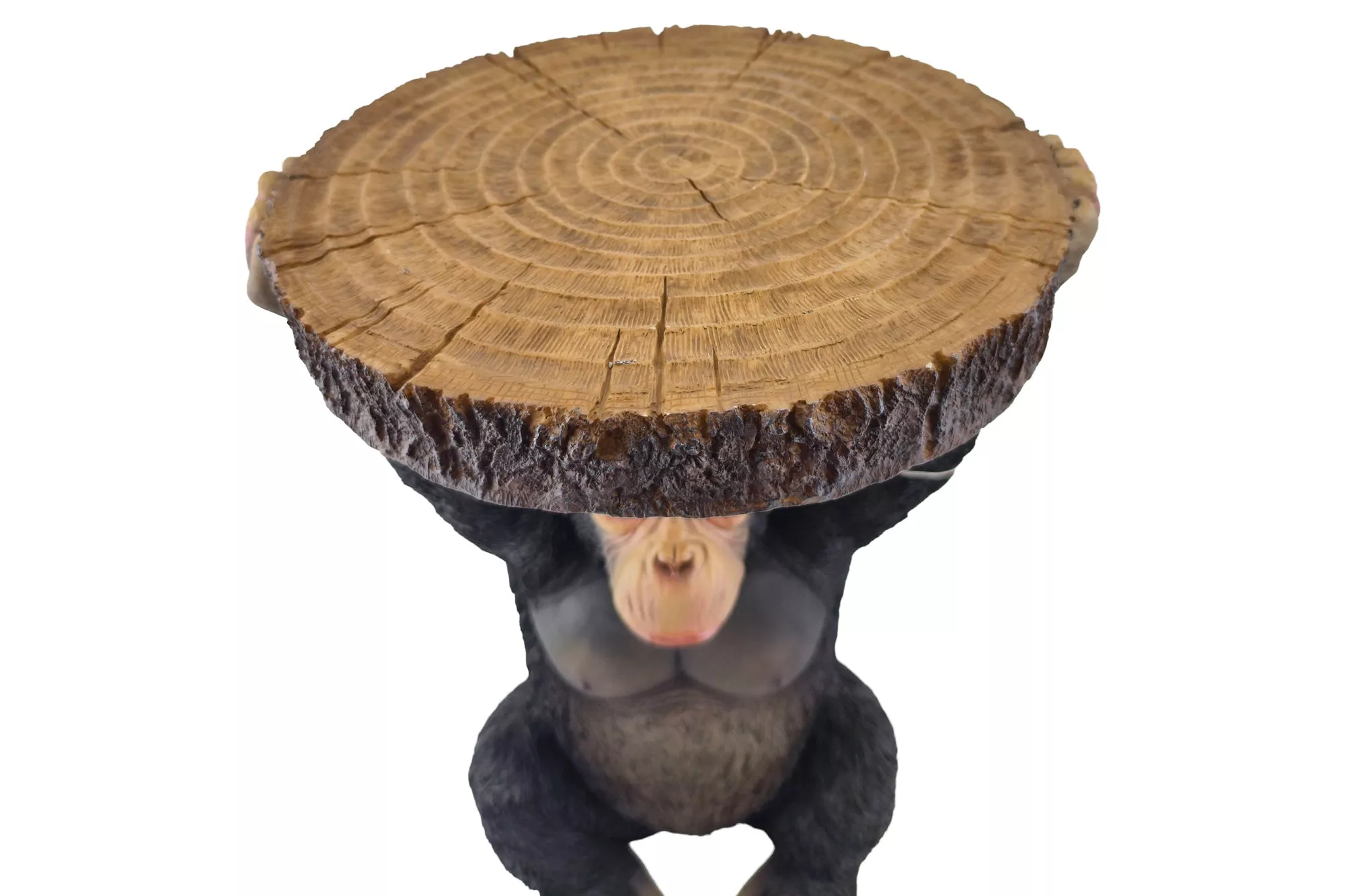 Kulatý odkládací stolek MONKEY 55 cm spojuje praktickou funkci s poutavým designem. Ručně vyráběná skulptura opice v černo-šedém provedení nese stabilní kulatou desku a vytváří výrazný designový prvek pro moderní interiér. Tento originální stolek je ideální jako stylový odkládací stolek do obývacího pokoje, ložnice nebo lounge prostoru, kde vynikne jeho detailní zpracování a jedinečný charakter.