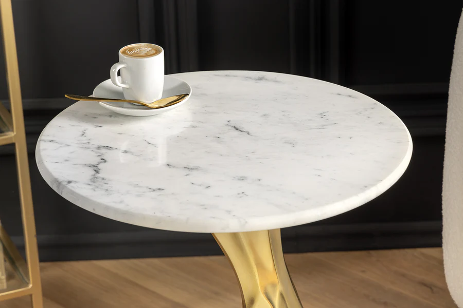 Odkládací stolek TEAR 60 CM zlatý / bílý mramor, II. jakost (C)