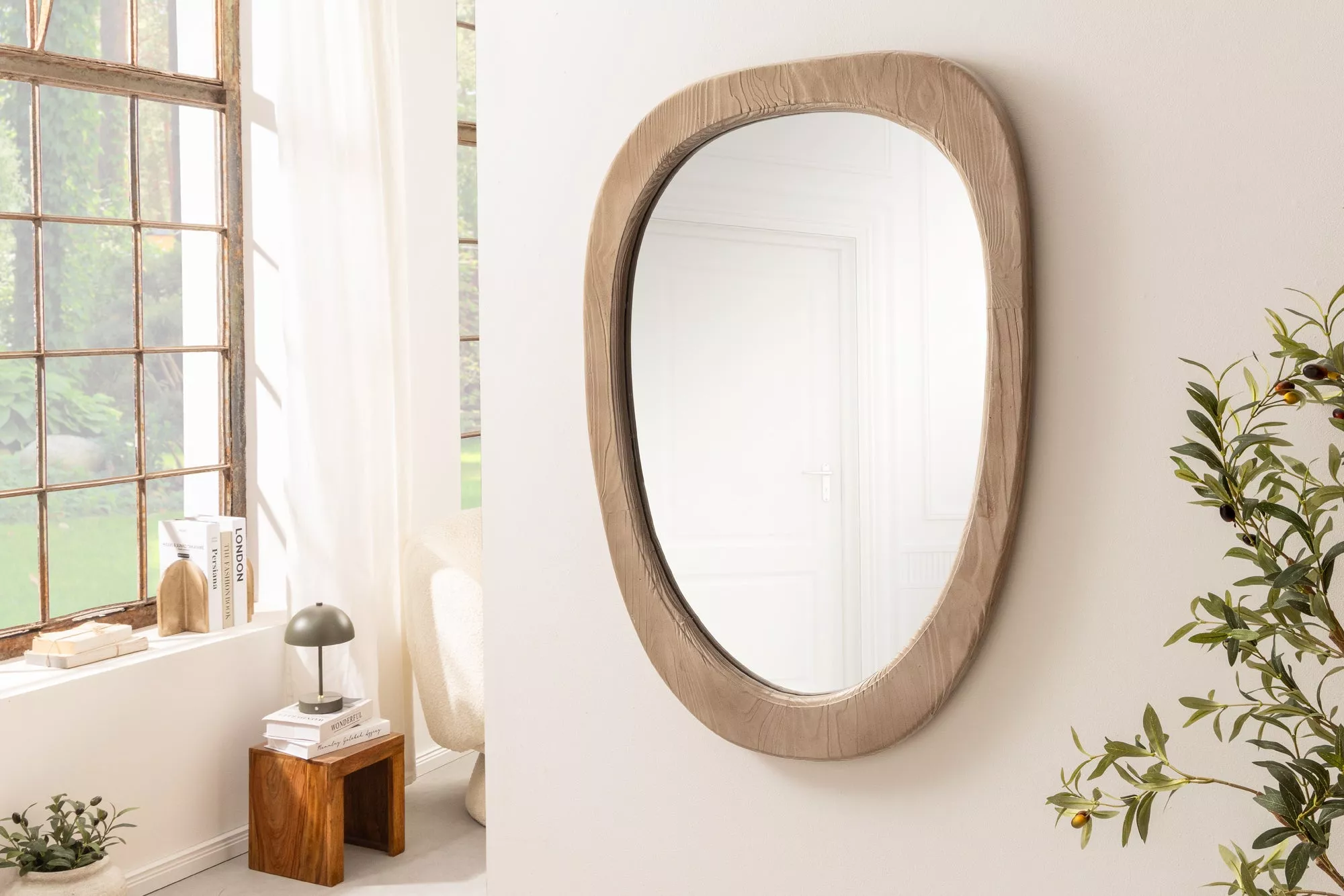 Zrcadlo ORGANIC o rozměru 105 cm zaujme svým jemně zaobleným rámem z přírodního borovicového dřeva v odstínu přírodní béžové. Jeho organický tvar propůjčuje prostoru harmonii a lehkost, a díky možnosti zavěšení horizontálně i vertikálně jej umístíte podle potřeby. Slouží nejen jako praktický doplněk, ale i stylový akcent, který rozzáří a opticky zvětší váš interiér.