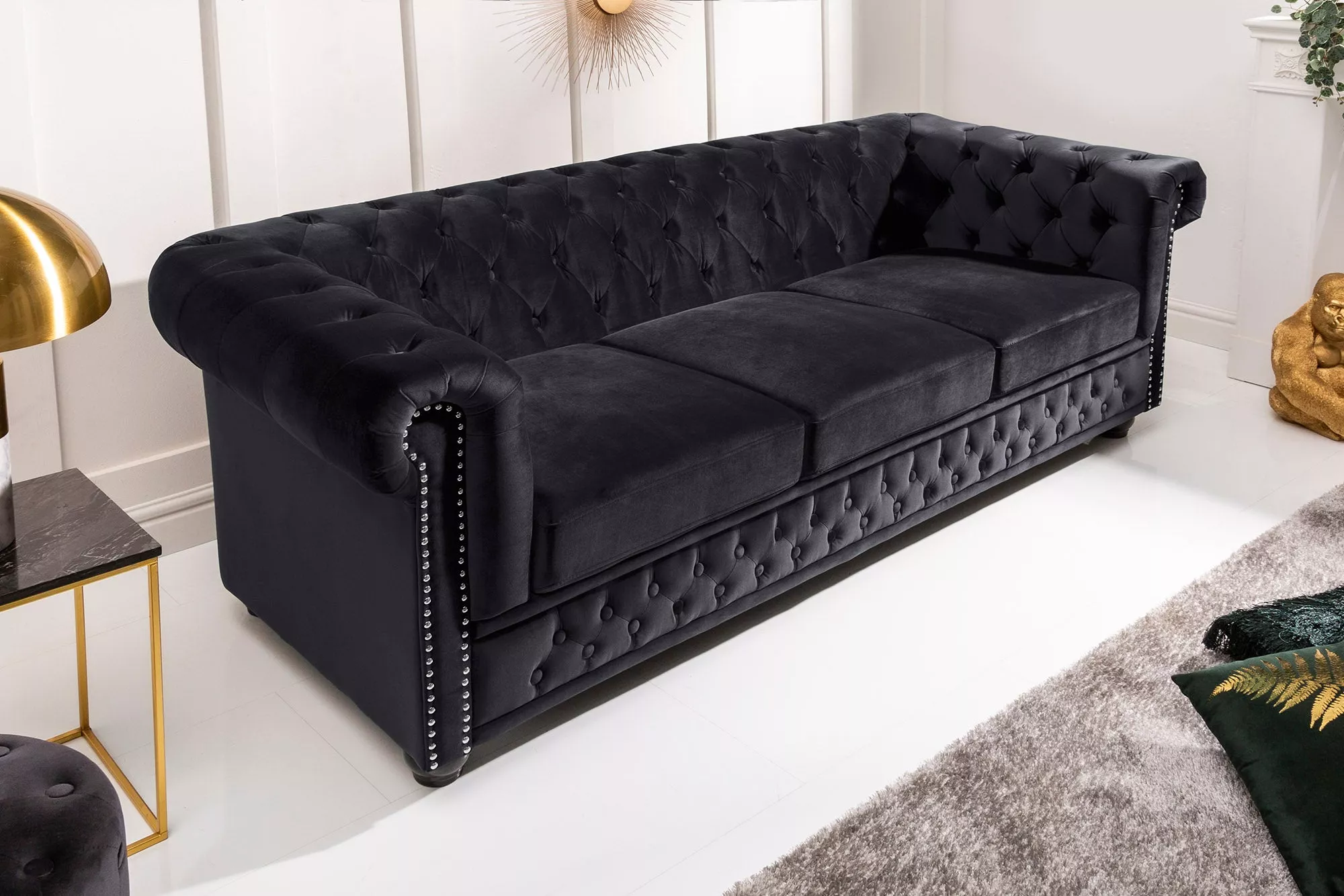 Pohovka CHESTERFIELD 3M 205 CM černá samet