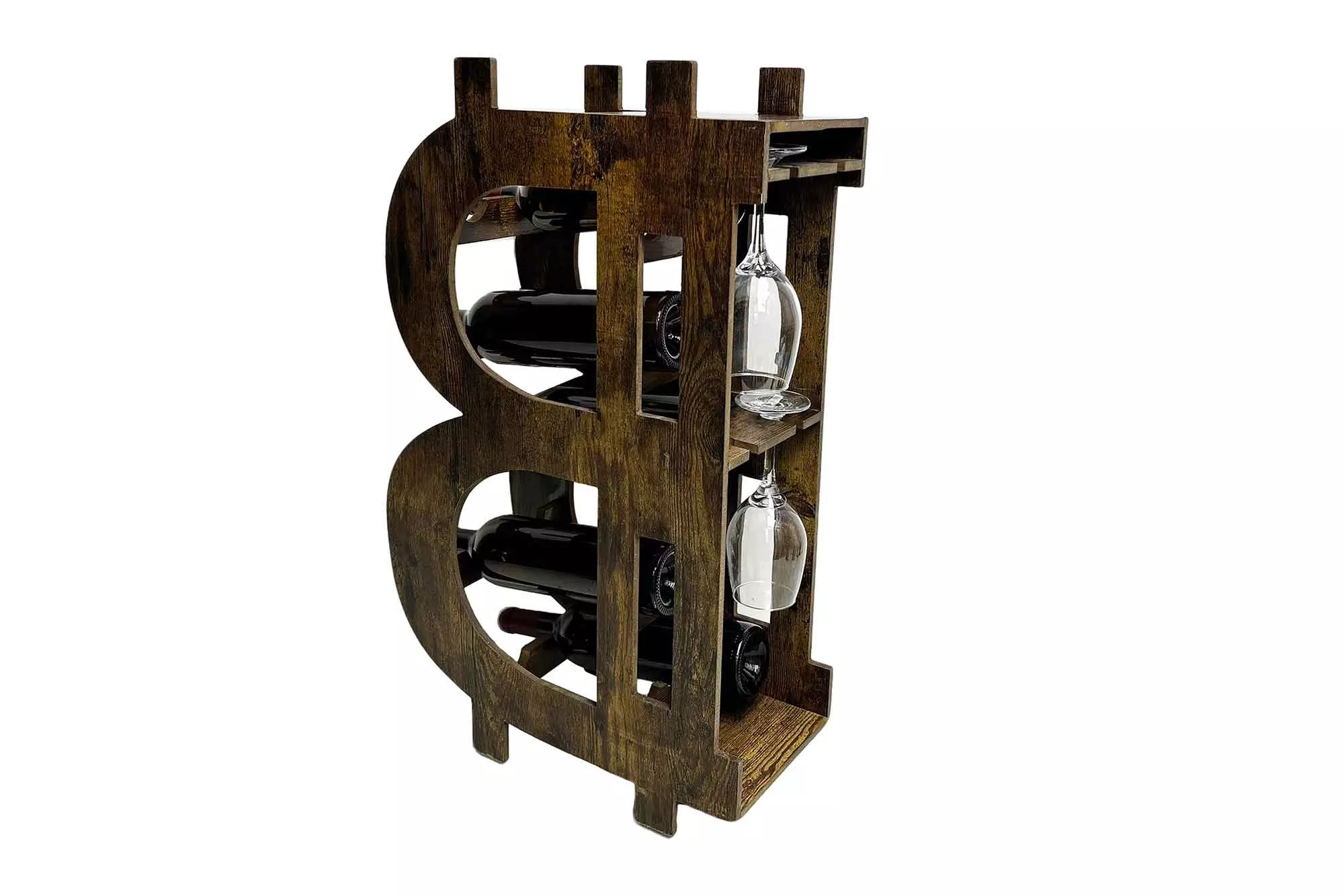 Originální stojan na víno z masivního borovicového dřeva zaujme svým neobvyklým designem a přirozenou kresbou materiálu. Nabízí praktický prostor pro uložení lahví a zároveň slouží jako výrazná dekorace, která dodá interiéru osobitý charakter. Ideální volba pro milovníky vína i stylového bydlení, kde se funkčnost snoubí s moderním vzhledem.