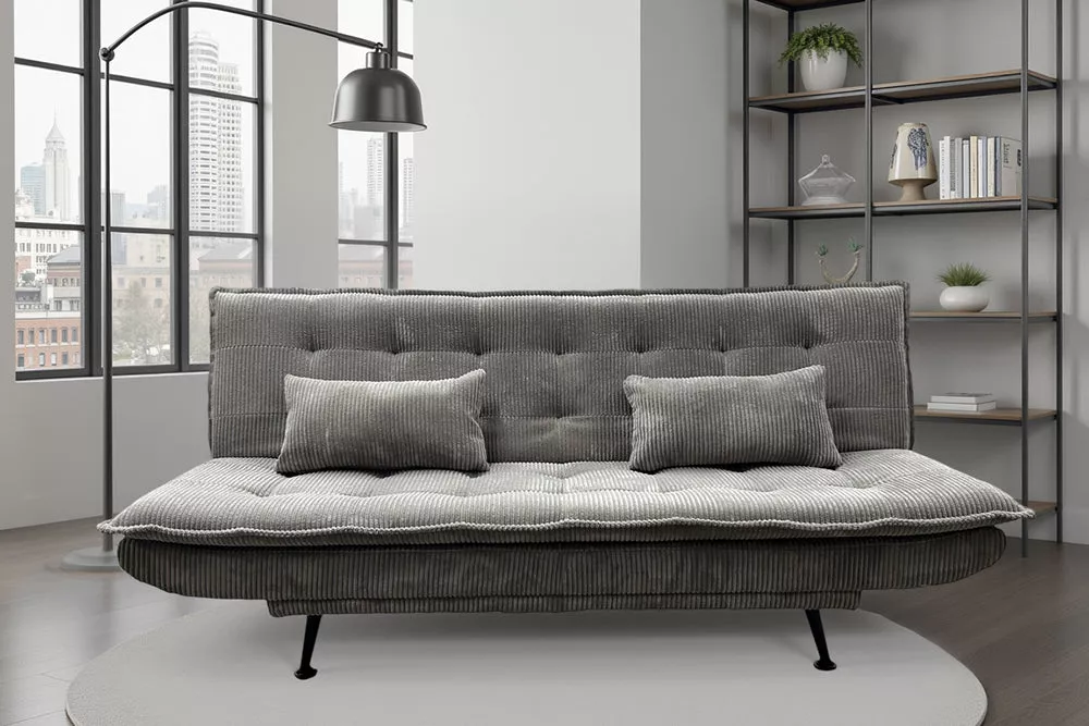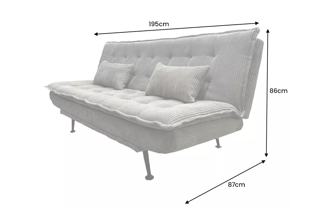 Moderní rozkládací pohovka JAZZ v greige manšestrovém provedení přináší styl i funkčnost. Tato 3místná sedačka nabízí pohodlný sedací komfort a snadno se přemění na lůžko o rozměru 195 × 160 cm. Robustní konstrukce z masivního dřeva s kovovými nohami zaručuje stabilitu, zatímco měkký manšestrový potah dodává hřejivý nádech interiéru. Dva dekorativní polštáře již v balení přispívají k útulnosti. Díky jednoduchému mechanismu se pohovka snadno přizpůsobí vašim potřebám — ať už chcete relaxovat, přijmout hosty nebo využít prostor navíc.