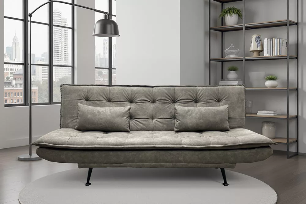 Moderní pohovka JAZZ v taupe mikrovláknu spojuje design, komfort a funkčnost. Díky jednoduchému mechanismu click-clack ji snadno přeměníte na lůžko o rozměru 195 × 160 cm. S kvalitní taupe látkou a dvěma polštáři v ceně se hodí do moderního, skandinávského či klasického interiéru.