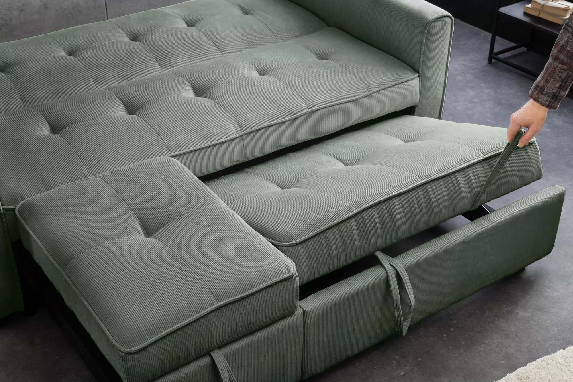 Rozkládací pohovka SMART 180 CM zelená manšestr