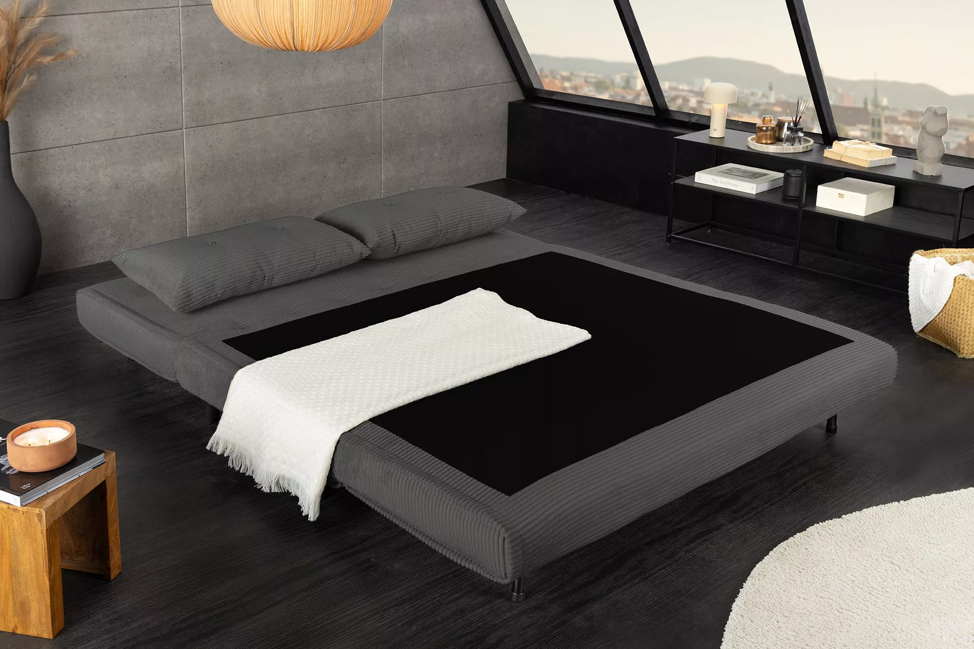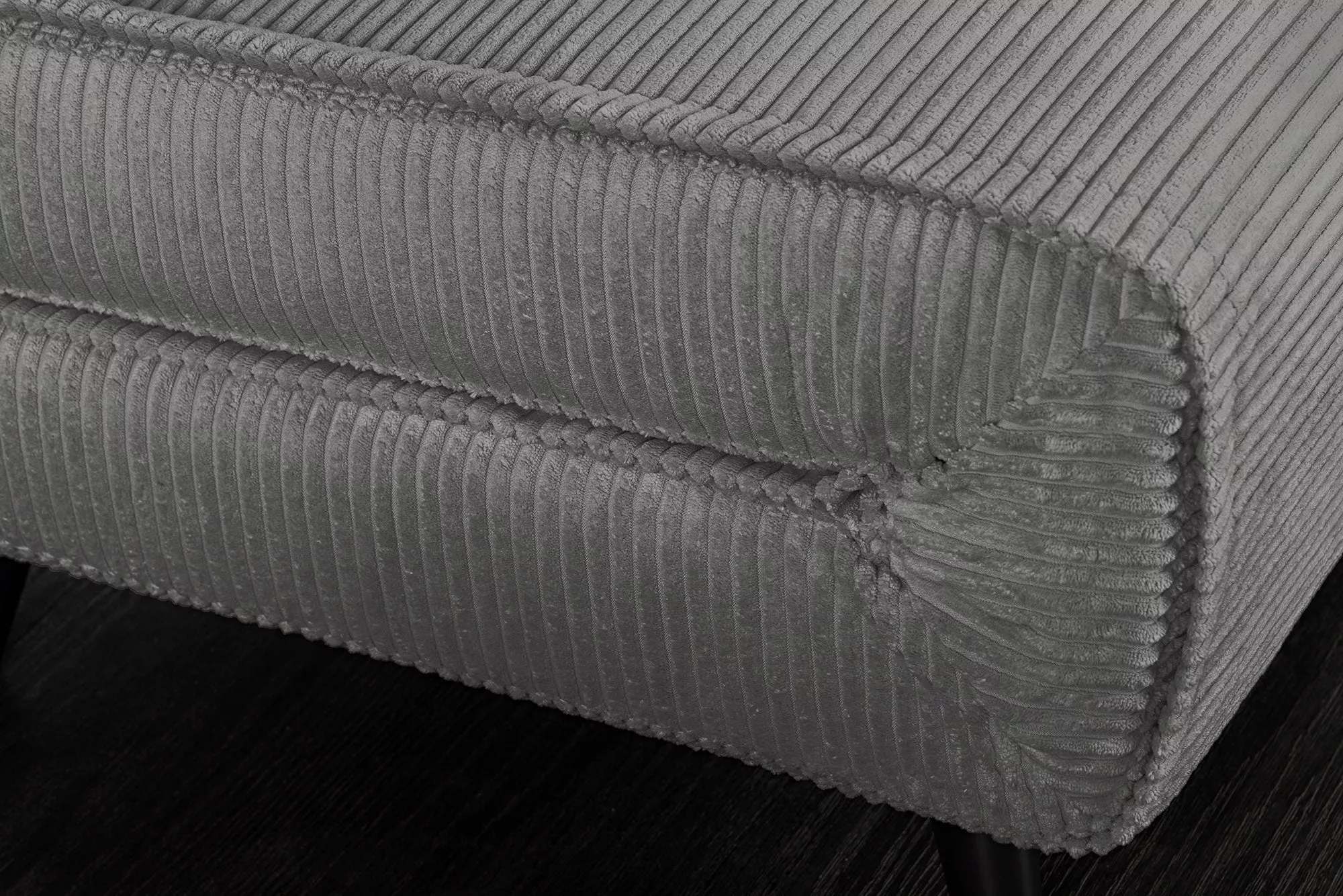 Stylová pohovka s měkkým manšestrovým potahem v elegantní šedé barvě nabízí během chvilky pohodlný prostor k relaxaci. Díky snadnému mechanismu ji lze několika jednoduchými kroky přeměnit na komfortní lehátko. Součástí jsou ozdobné polštáře a nožičky s plstěnými kluzáky, které chrání podlahu. Rychlá a jednoduchá montáž z ní činí ideální volbu i pro menší interiéry. Obsah balení: 1 pohovka, 2 dekorační polštáře.