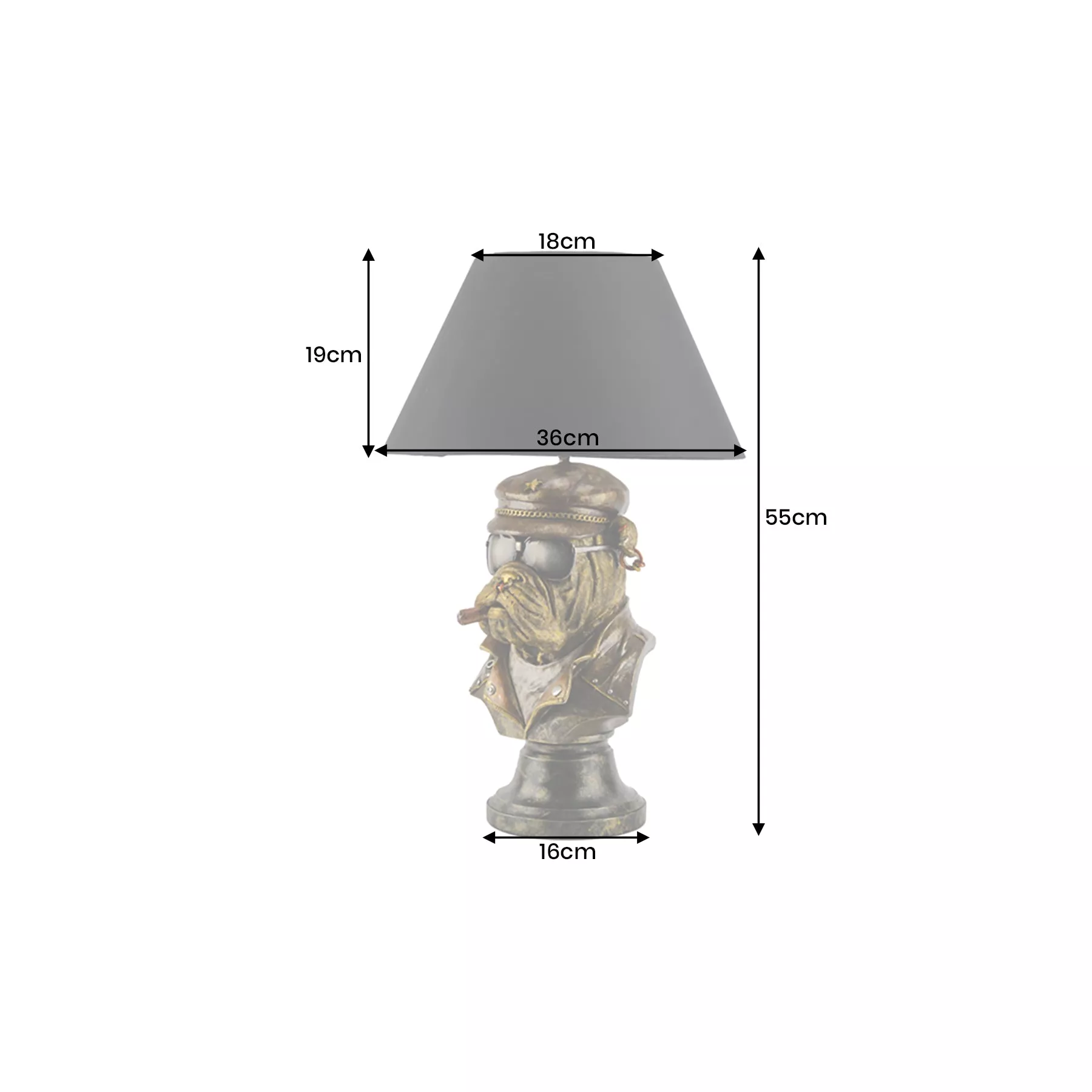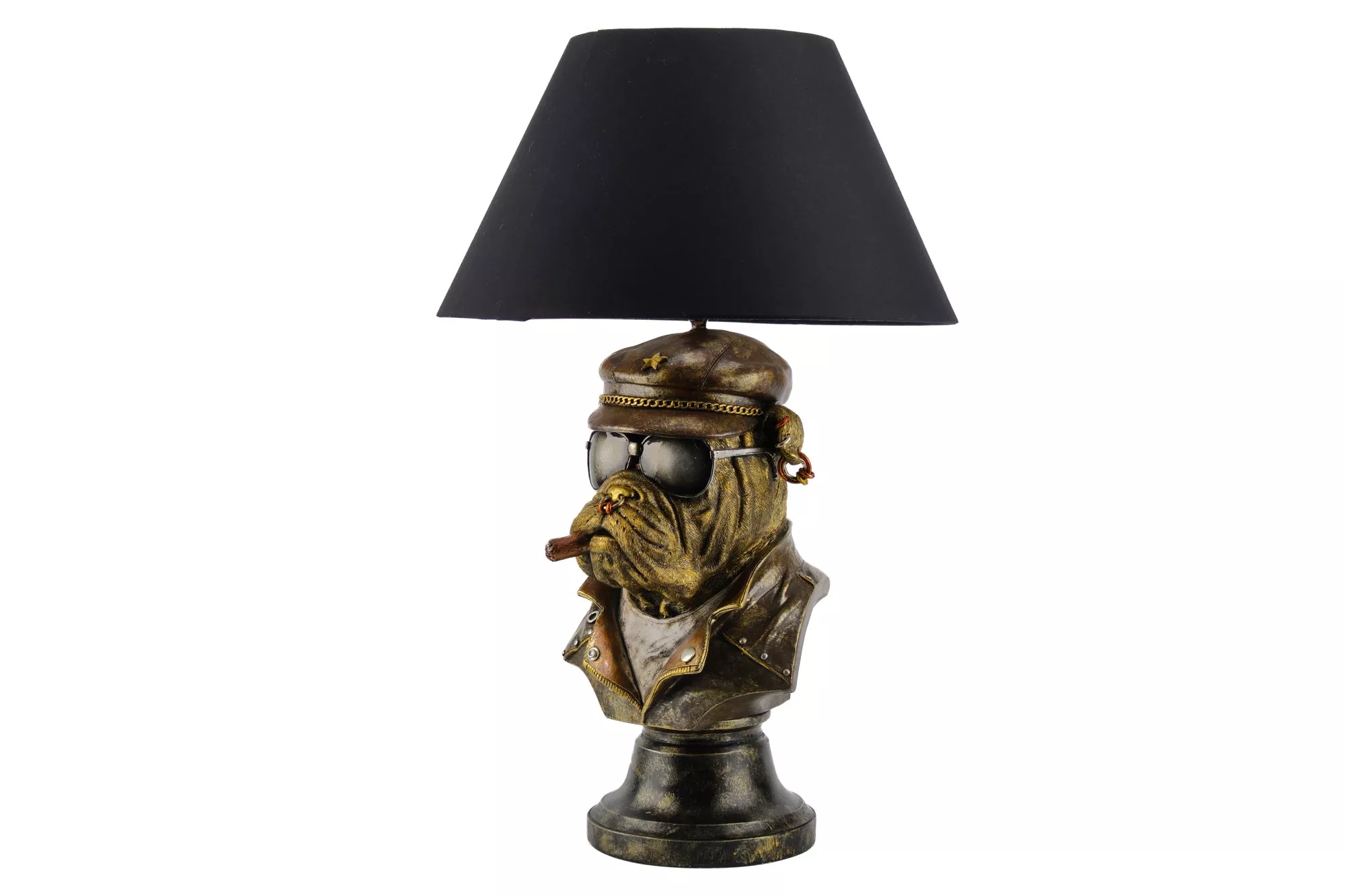 Ručně vyrobená designová stolní lampa BULLDOG 55 cm spojuje umělecké řemeslo s funkčním osvětlením. Detailně zpracovaná soška bulldoga v bronzovo‑hnědém odstínu dodává lampě charakter a osobitý výraz, zatímco černé látkové stínidlo vytváří příjemnou světelnou atmosféru v prostoru. Každý kus je ručně vyrobený a ručně malovaný, což z něj činí jedinečný designový prvek. Díky své výšce 55 cm je tato dekorativní lampa ideální volbou pro obývací pokoj, konzolový nebo noční stolek, kde přináší stylové osvětlení a osobitý akcent do moderního interiéru.