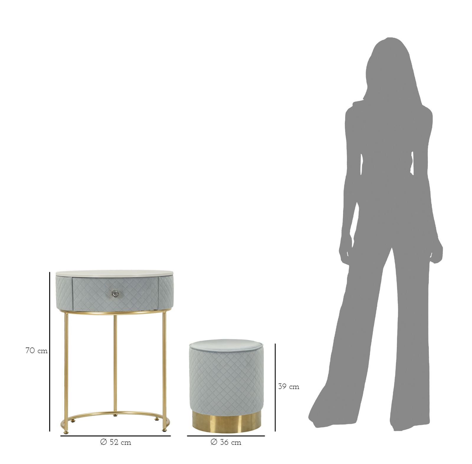 Toaletní stolek SHARON 70 CM nebesky modrý/zlatý