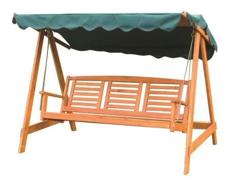 Elegantní lavicová zahradní houpačka. Vyrobena z kvalitního borovicového masivu. Dřevo je mořené do oranžova. Houpačka je dodávána včetně látkové stříšky. Certifikát FSC zaručuje, že použité dřevo pochází ze šetrně obhospodařovaných lesů, ve kterých jsou dodržovány přísné ekologické asociální požadavky.