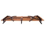 Zahradní dřevěná sestava, která zahrnuje 2 lavice + stůl. Set je vyrobený z borovicového dřeva s kovovou podnoží. Dřevo je impregnováno v dubové barvě + lakované. Velkou výhodou tohoto setu je možnost složení podnože- je tak jednodušší ho uložit či převážet. Certifikát FSC zaručuje, že použité dřevo pochází ze šetrně obhospodařovaných lesů, ve kterých jsou dodržovány přísné ekologické asociální požadavky.