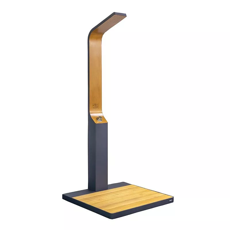 Teakové dřevo dodává sprše příjemný přírodní charakter a na dotek působí teple a přirozeně, zatímco kovová konstrukce poskytuje pevnost a dlouhou životnost. Promyšlený design spojuje komfort s elegancí a proměňuje venkovní sprchování v příjemný a relaxační zážitek.