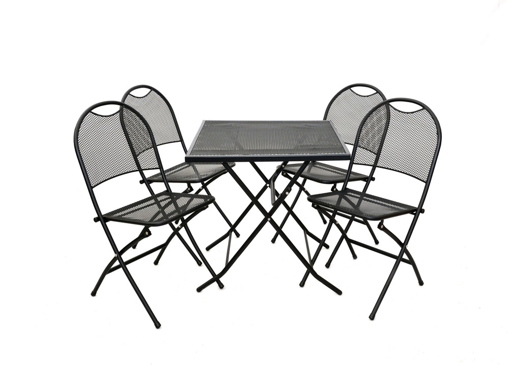 Skládací kovový zahradní stůl s drátěnou vrchní deskou. Výborně se kombinuje se všemi typy kovového zahradního nábytku. Je lehce udržovatelný a omyvatelný.