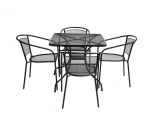 Kovový zahradní stůl s drátěnou vrchní deskou čtvercového tvaru. Výborně se kombinuje se všemi typy kovového zahradního nábytku. Je lehce udržovatelný a omyvatelný.