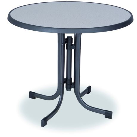 Kulatý skládací stůl s kovovou pevnou konstrukcí a odolnou vrchní deskou sevelit. Vhodný pro vnitřní i venkovní použití - zahrady, terasy, do restaurací či kaváren. Odolnost vůči UV záření, povětrnostním vlivům i mechanickému poškození. Lehce udržovatelný, omyvatelný, skladný.
