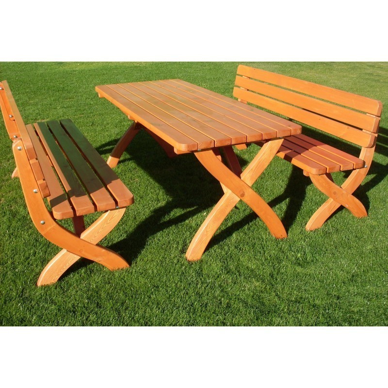 Masivní zahradní stůl z borovicového dřeva, které je lakované. Díky použitému materiálu a jeho zpracování je stůl velmi odolný a kvalitní. Certifikát FSC zaručuje, že použité dřevo pochází ze šetrně obhospodařovaných lesů, ve kterých jsou dodržovány přísné ekologické asociální požadavky. Tento stůl lze doplnit o lavici WOOD II.