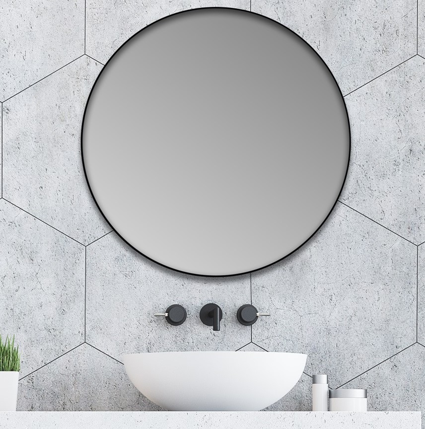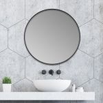 Kruhové zrcadlo s průměrem 70 cm v černém kovovém rámu je vhodným designovým doplňkem k oblíbeným černým koupelnovým doplňkům. Zrcadlo je vybavené závěsy a příslušnými montážními prvky na zeď.