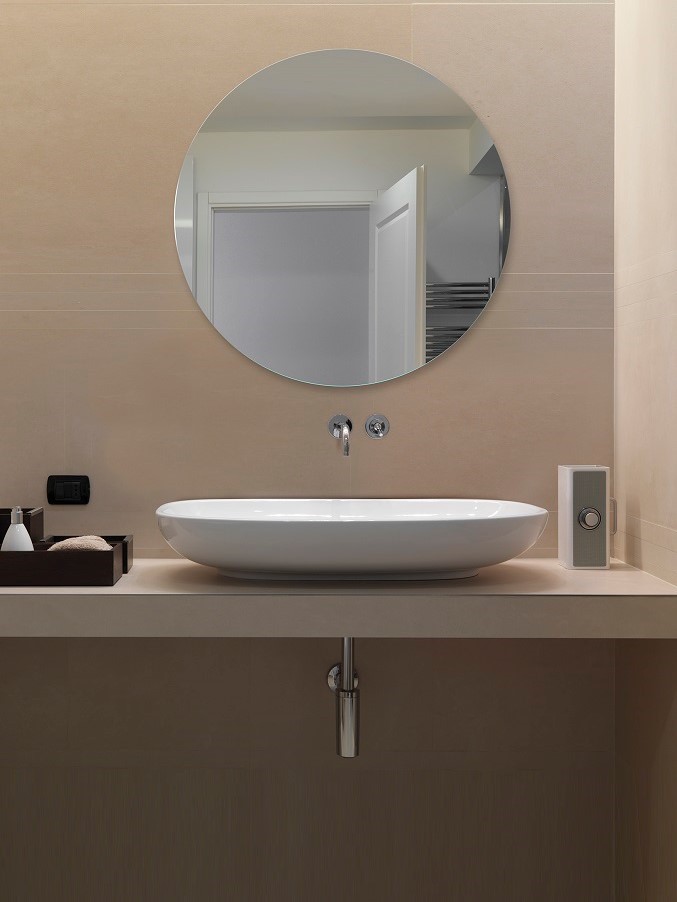 Zrcadlo kruhové o síle 4mm s leštěnou hranou - včetně závěsů a příslušného montážního materiálu do zdi.